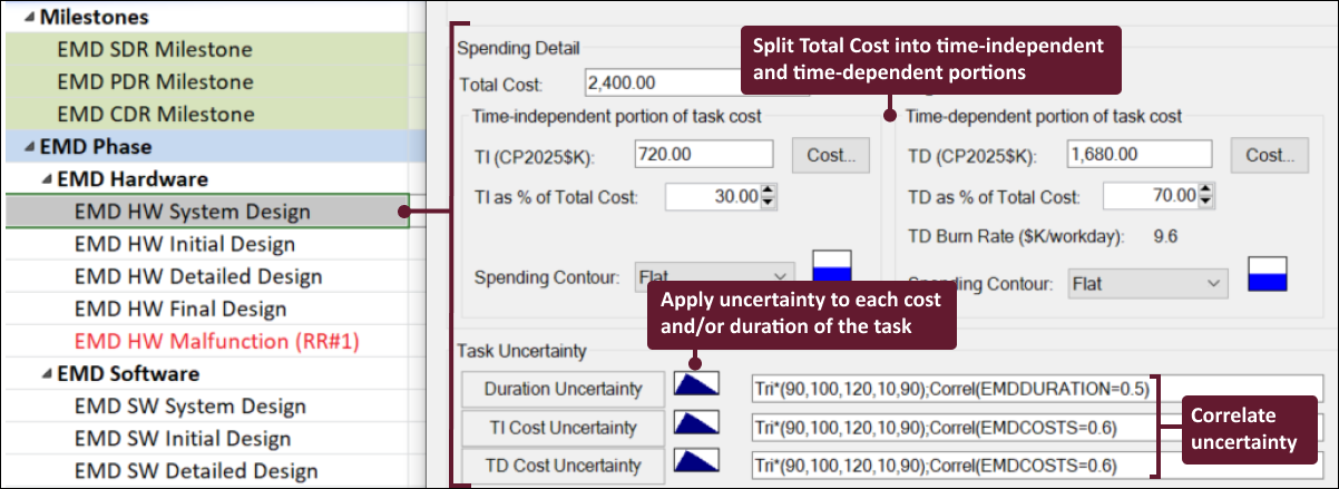 Perform integrated uncertainty analysis of a cost-loaded schedule.